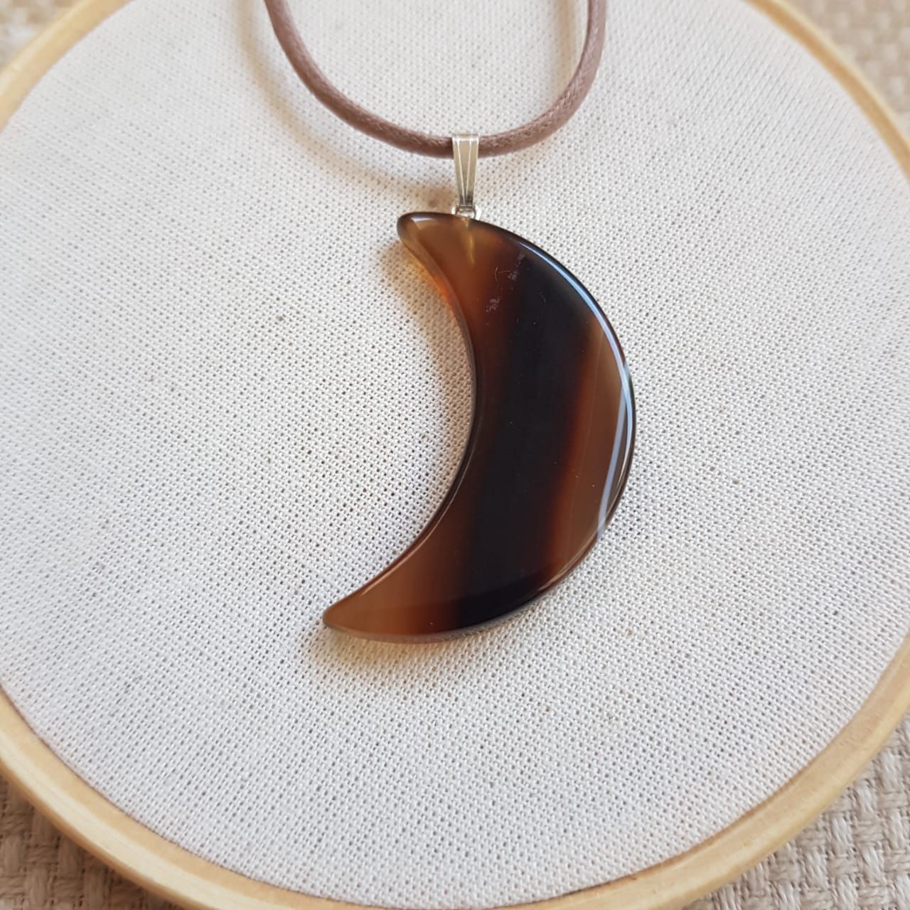 Pingente de pedra natural ágata,em formato de meia-lua, medindo 4 cm de comprimento por 1,5 cm de largura. Pingente muito versátil e lindo.